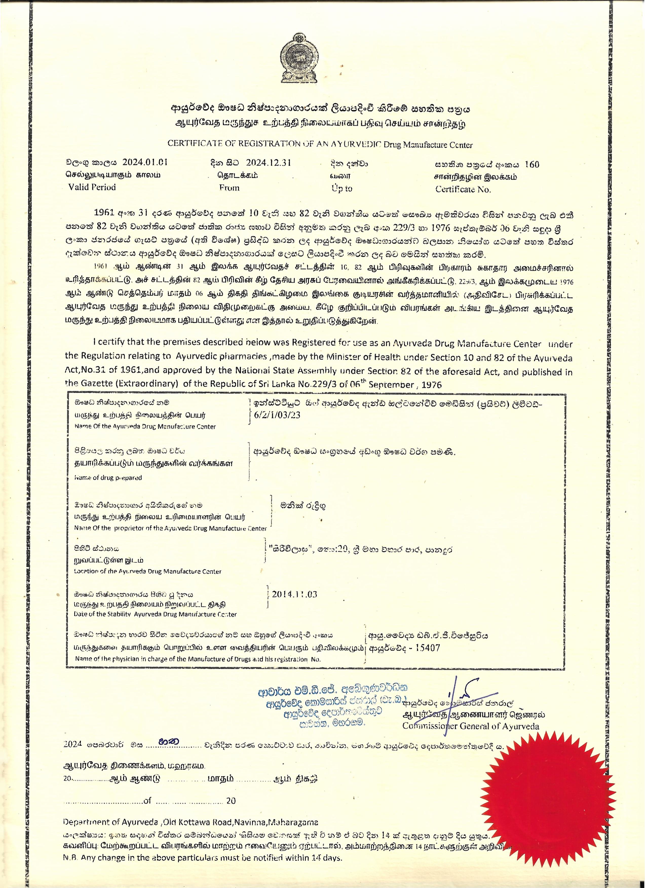 The Institute of Ayurveda and Alternative Medicine (IAAM) is producing a range of medicine for the exclusive use of Barberyn Ayurveda Resorts. All medicine is plant based, only natural ingredients are being used. No metal or mercury is used in the making of our medicine. IAAM is certified by the Department of Ayurveda to produce Ayurveda medicinal products.