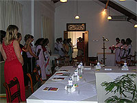 Ayurveda Intensive Kurs Kursdaten: 2. – 22. Juli 2006 Veranstaltungsort: Barberyn Reef Ayurveda Resort, Beruwela Zum Vergrößern bitte die Fotos anklicken Eröffnungszeremonie Besuch der Apotheke Durch Praxis lernen Ayurveda Kochstunde Yoga und Meditation Der Weligama Kräuter Garten Besuch der Anamali Vorschule (Sahana Sri Lanka Stiftung) Die offizielle Abschlusszeremonie